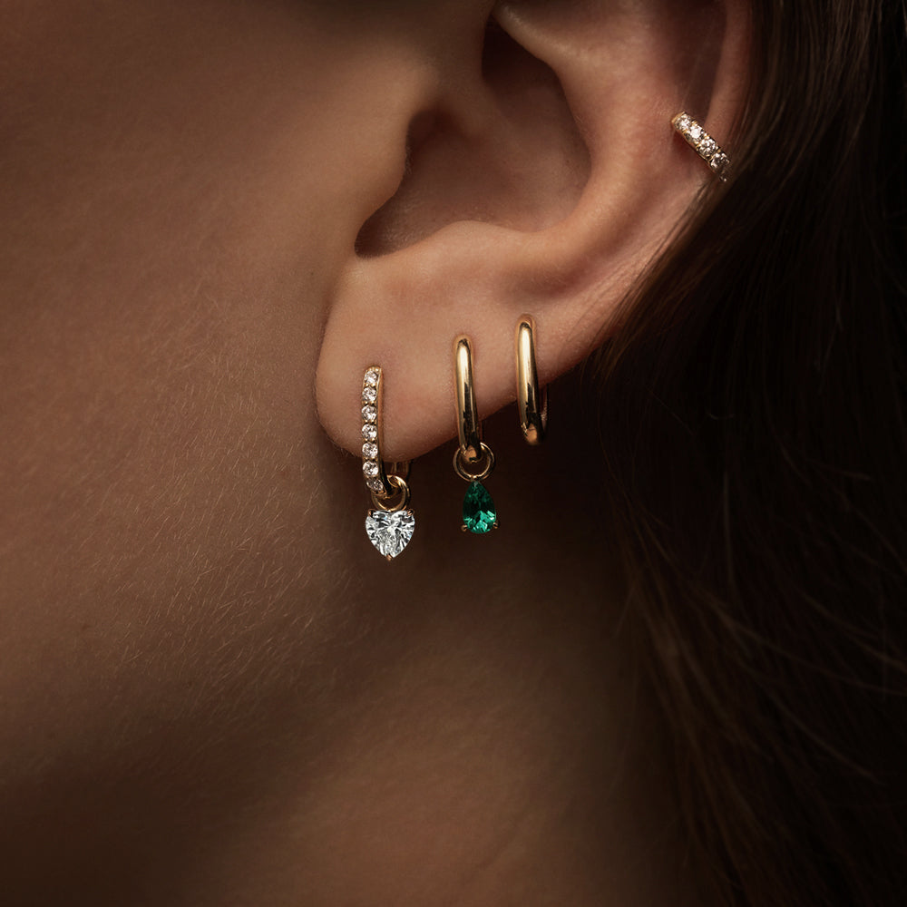 Fall in love with our LOEV Allday diamond huggies, handcrafted in 14kt recycled gold and featuring 0.30ct heart cut lab grown diamond drops.