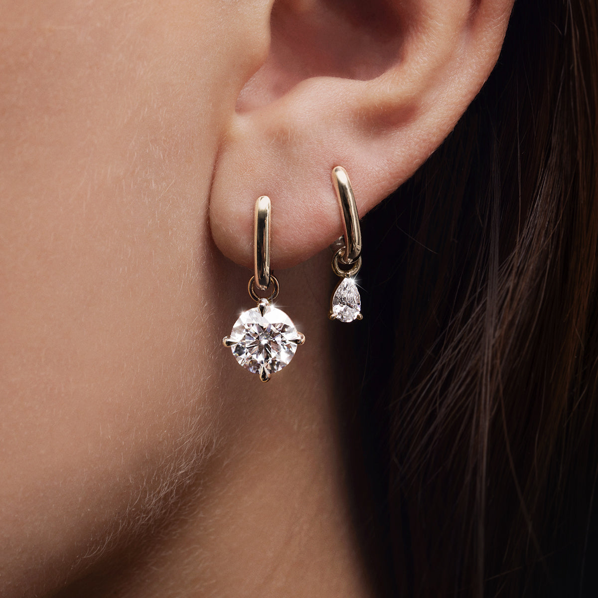 The LOEV Allday 14kt polished gold huggies are a contemporary oval shape and each feature a removable sparkling 0.50ct or 1.00ct round brilliant cut lab grown diamond drop. Allowing you to customize your style by choosing to wear them with the diamond drop or as plain gold huggies.