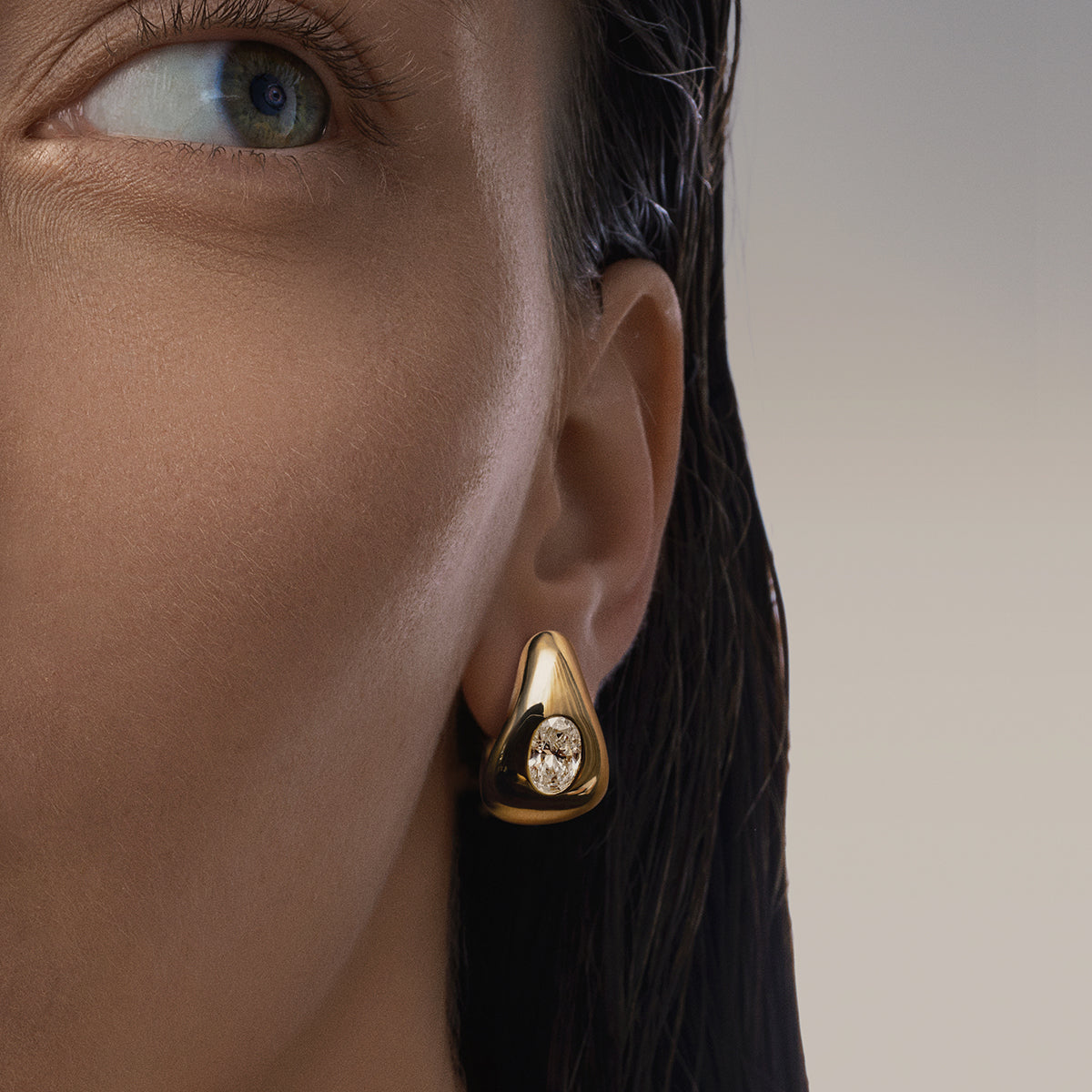 Specifically crafted in 14kt recycled gold to ensure light weight earrings you will never want to take off. Style them with the Curve or Allday huggies in your second piercing for the perfect ear party.