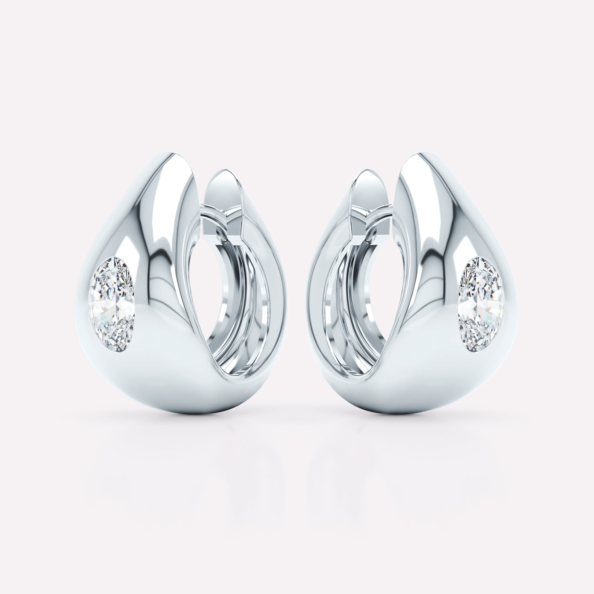 0.75ct Oval cut near colorless or better (DEF) lab grown diamonds of very slightly included or better clarity (VS+) in each hoop