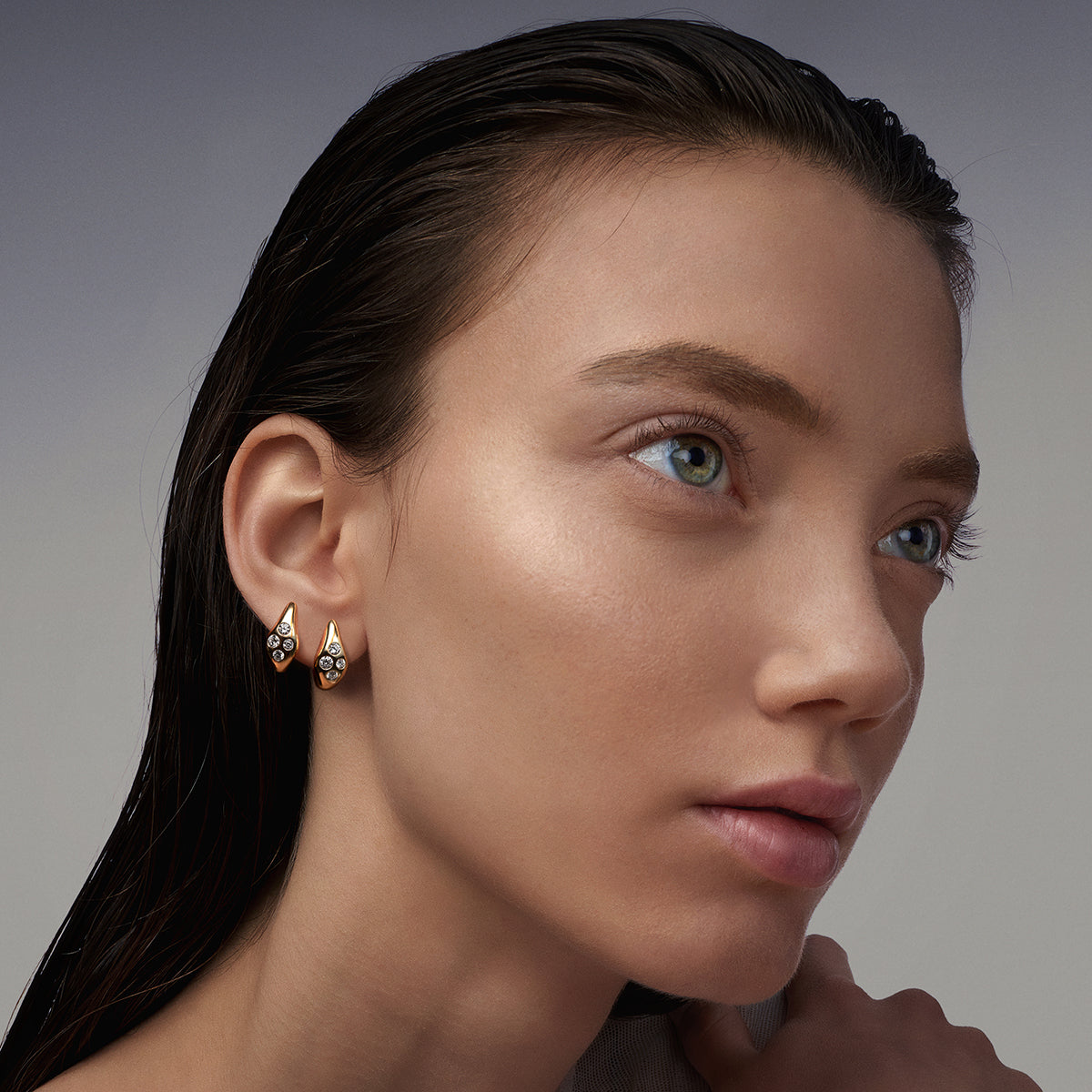 The Curve Diamond Huggies are handcrafted in 14kt polished recycled gold. A contemporary tapered silhouette, designed to sit high on your earlobe for an on-trend look. Featuring a secured hinged clasp to close.
