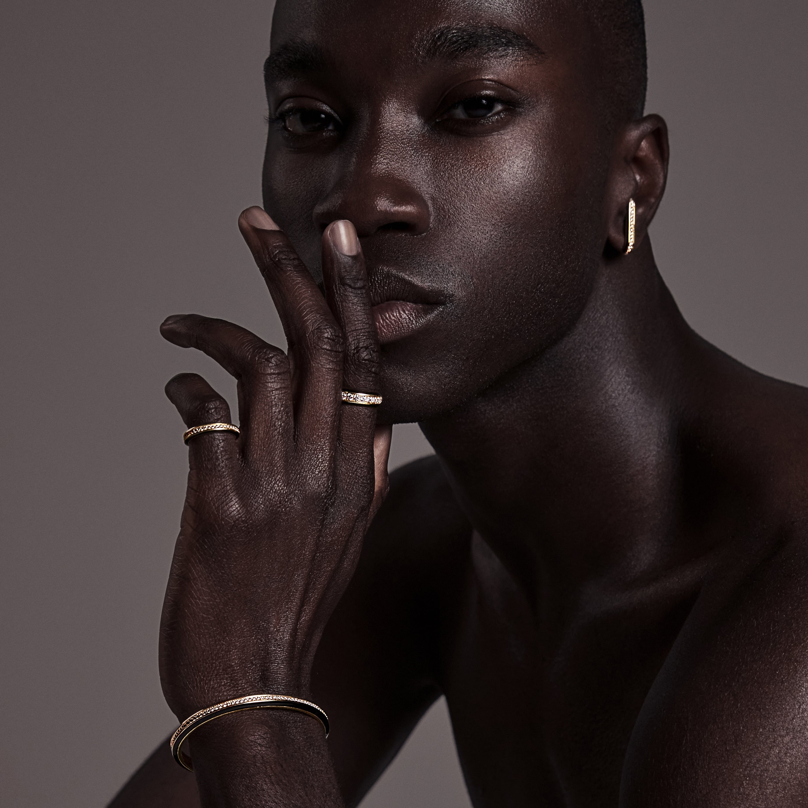 The LOEV Eternity Black Enamel Bangle is composed of 18Kt recycled rose gold and a magnificent line of lab grown diamonds which run around the entire bangle, allowing it to sparkle from every angle. The perfect everyday bangle which is handcrafted with a smooth gold inlay and weighs a luxurious 25 grams of solid gold.