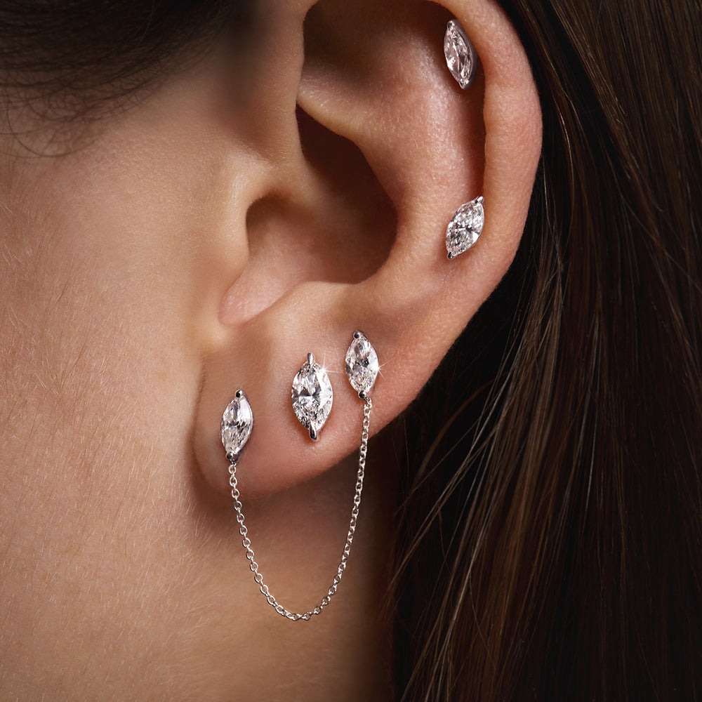 Designed for those with two piercings in one ear, this single earring offers a modern twist on classic elegance. Wear it alone for a striking statement or mix and match it with other styles to create your own distinctive, personalised combination.