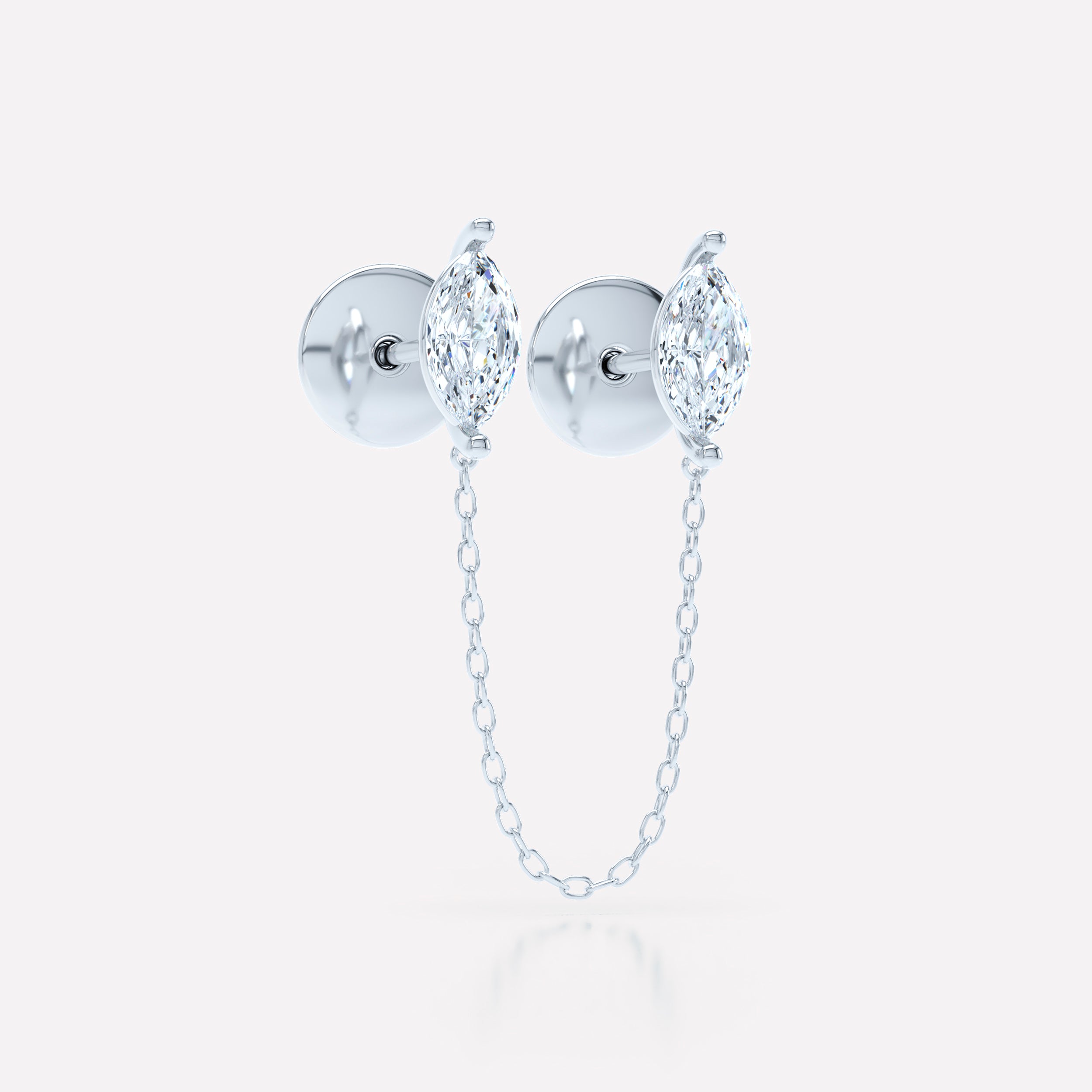 Two 0.30ct marquise-cut diamonds — a total of 0.60 carats of dazzling brilliance — are gracefully suspended on either side of a delicate anchor chain, meticulously crafted in 14kt recycled gold.